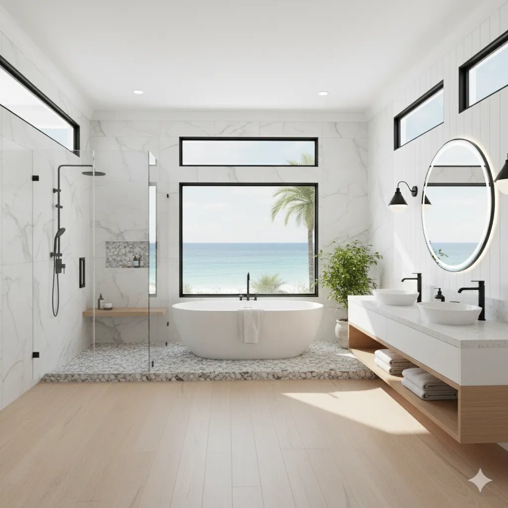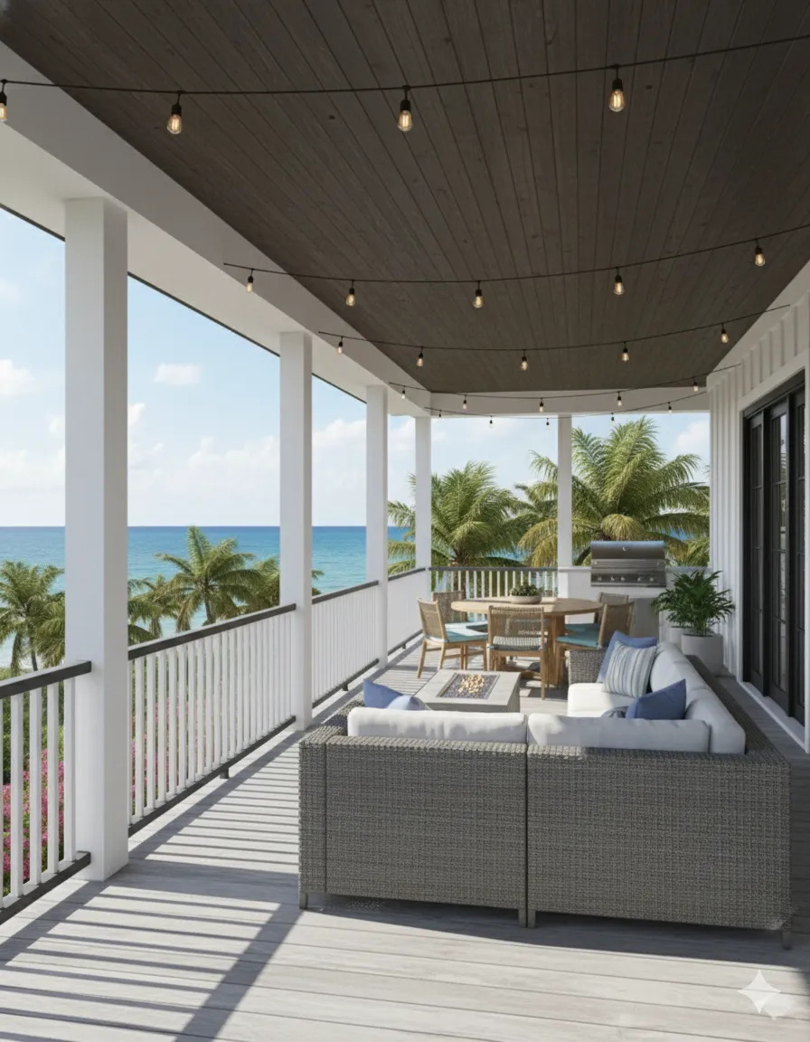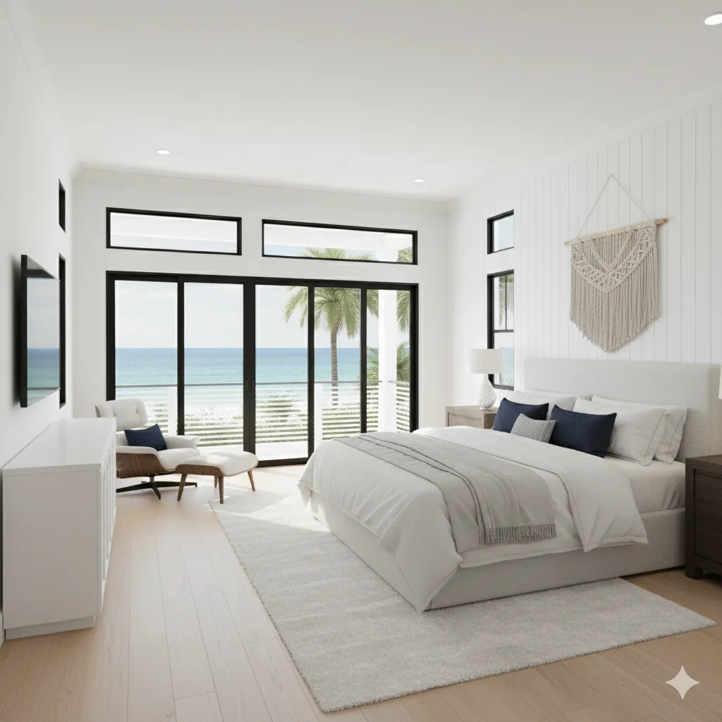Exterior systems, flashing details, and sealed penetrations designed for salt-air environments. Material selections consider lifecycle and maintenance planning.